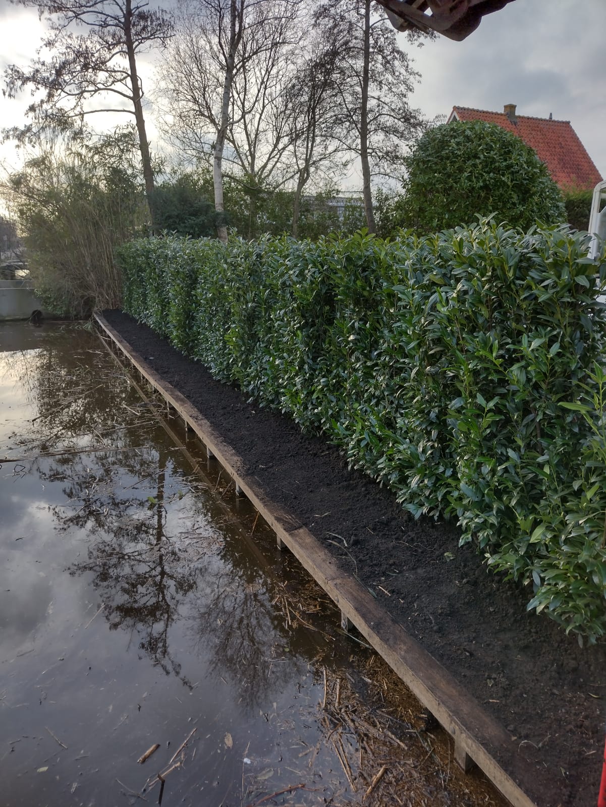 Beschoeiing wordt toegepast ter bescherming van tuinen langs het water en voorkomt zo erosie door wind, water en ijs. Zo heeft u geen last meer van een aflopende oever of wegzakkend grond en benut u alle ruimte en meters van uw tuin. Wij verankeren beschoeiingen diep in de oever, onder de juiste hoek en met voldoende ankerpunten.Beschoeiing die niet goed geplaatst is en onvoldoende verankerd, gaat na verloop van tijd verzakken. Het vervangen of herstellen van een verzakte beschoeiing is prijzig en levert u bovendien onnodig ongemak. Wij plaatsen de beschoeiing in één keer goed, zodat u er vele jaren plezier van hebt. Uiteraard bieden wij ook het slopen van de huidige beschoeiing, het afvoeren van het sloopmateriaal en het aanvullen met grond en/of houtsnippers aan. Als wij dan toch uw beschoeiing mogen maken, kunnen we ook uw steigers en/of vlonders vernieuwen.