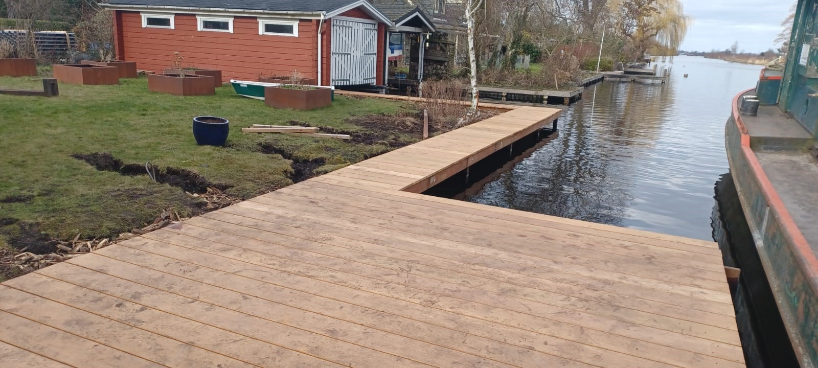 Richards Groen- en Waterwerken is gespecialiseerd in het maken van beschoeiingen. Door jarenlange expertise maken wij de mooiste en strakste beschoeiingen voor uw tuin/eiland.